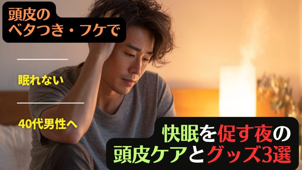 頭皮のベタつき・フケで眠れない40代男性へ|快眠を促す夜の頭皮ケアとグッズ3選