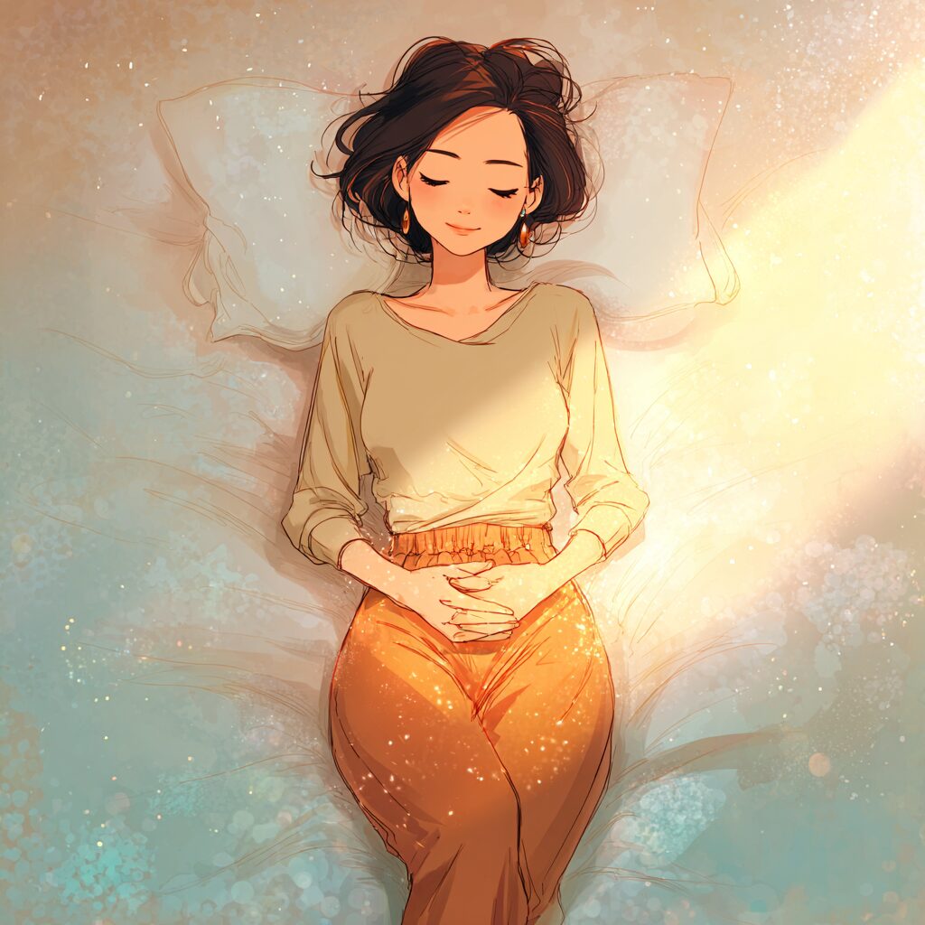 お腹には多くの内臓が集まっており、温めることで血流が改善し、副交感神経が優位になりやすくなります。内臓が温まると体全体がリラックスし、入眠を促します。
